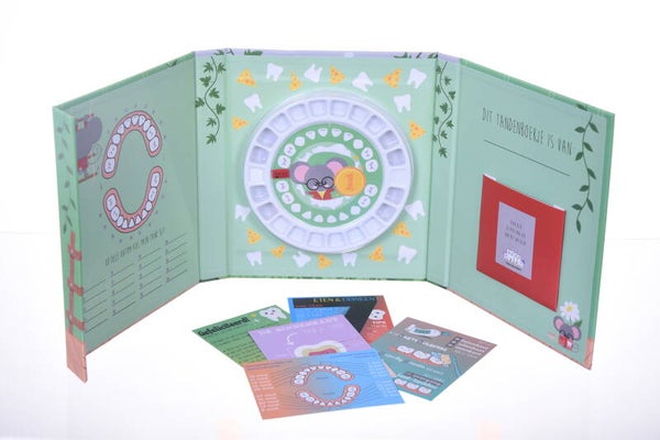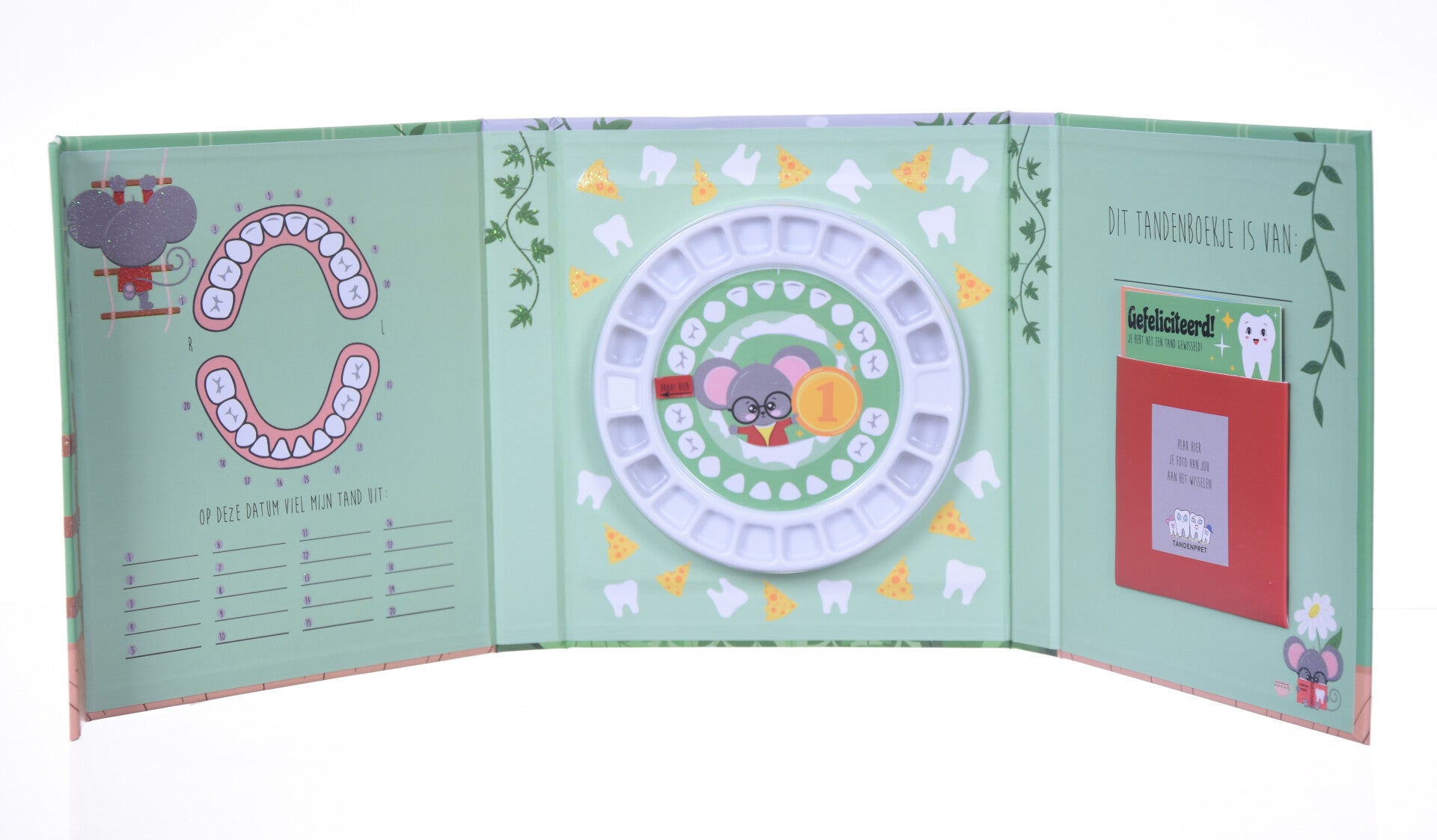 Het boekje bestaat uit een handige houder met draaivakjes waar elke tand zijn eigen plaats heeft. Er is plaats voor een foto en bij elke tand kun je bijhouden wanneer deze gewisseld is. Daarnaast bevat het boekje een vijftal speciale kaartjes die het extra interessant maken voor uw kind. Deze kaartjes beschrijven educatieve weetjes over de tanden vergezeld van leuke tekeningen of bieden ruimte voor eigen (aan)tekeningen van uw kind.